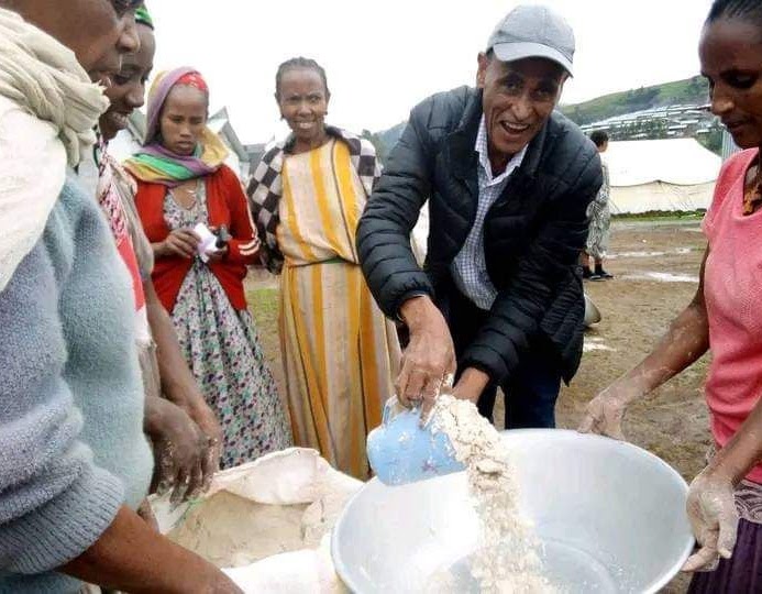 Mr. Mulukun Azanaw, local chairman of the Walia Charity Association, expressed solidarity with the displaced, stating, “Your displacements are ours, your pains are ours”. The organization distributed over 100 kilograms of flour and 20 mattresses to families and 15 kilograms per head.