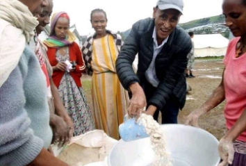 Evacuee Mrs. Ababa Demle praised US resident supporters for their generosity, saying, “Despite challenges, they brought aid to us in need.” She received 15 kilograms of teff flour and expressed gratitude.