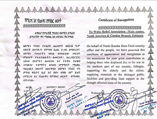 The North Gondar Zone Food Security Office honors us with its prestigious Certificate of Recognition. This acknowledges Walia Charity Association members’ unwavering dedication to empowering vulnerable communities, notably single-parent households, women, elderly, and crisis-affected residents during North Gondar’s devastating drought and landslide.